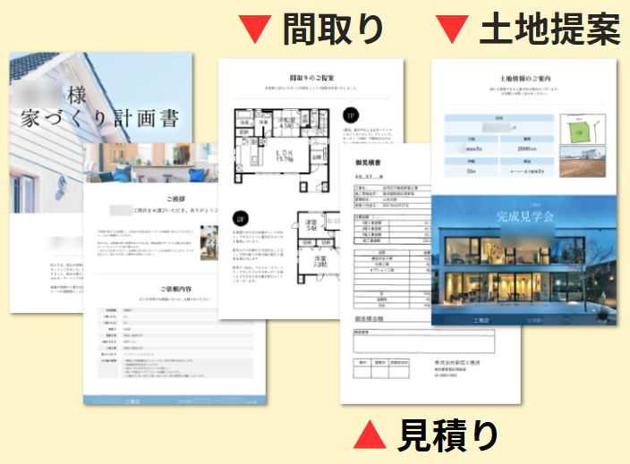 → 間取りプラン、資金計画書、土地情報などのオリジナル提案資料 - カタログ型サービスの場合: